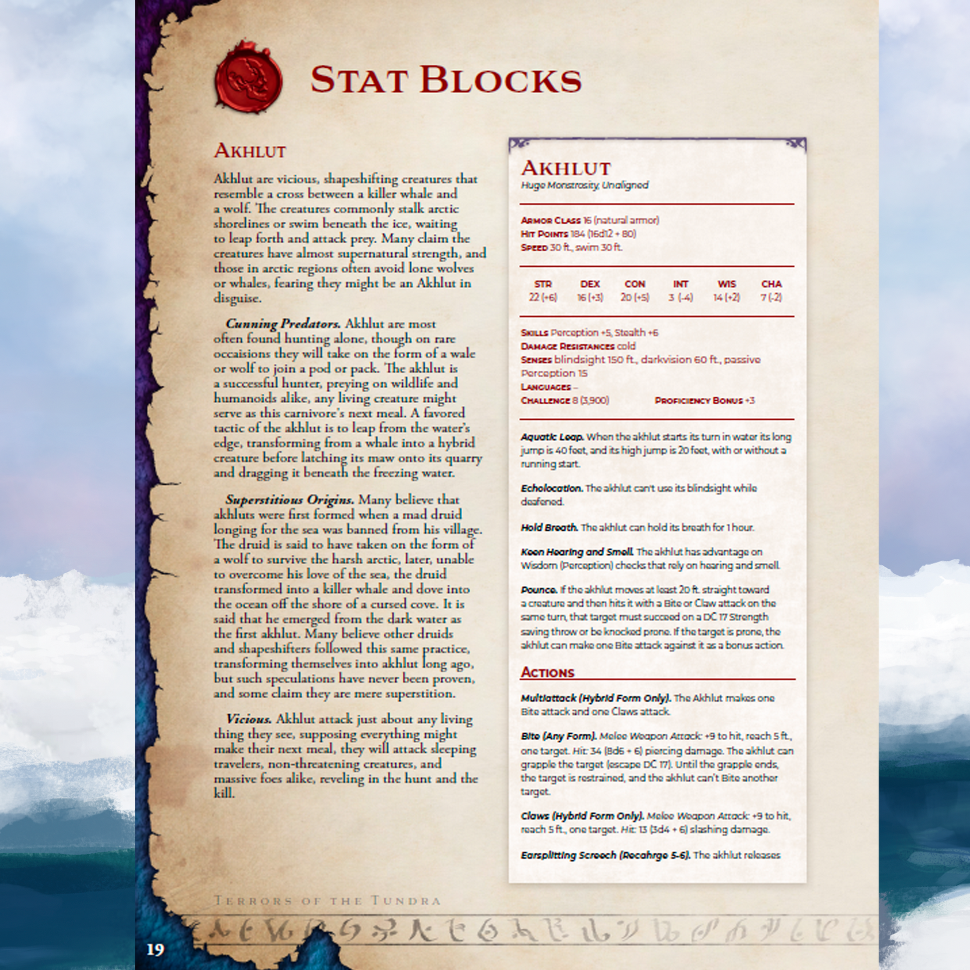 - 5 tundra-themed, ready-to-drop encounters for parties of all levels
